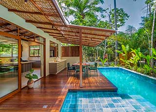Bungalows típicos inspirados na Tailândia, para até 4 pessoas. A tranquilidade, o som do mar, o cantar dos pássaros, o sol, o restaurante com culinária Tailandesa e área de massagens tailandesas, a piscina, esses são alguns diferenciais. Com cozinha completa, banheiros com água pressurizada e aquecida a gás, cama queen em dossel e mosquiteiro, ar-condicionado SPLIT, TV LED 28”, Wi-Fi.Praia de Taipu de Fora